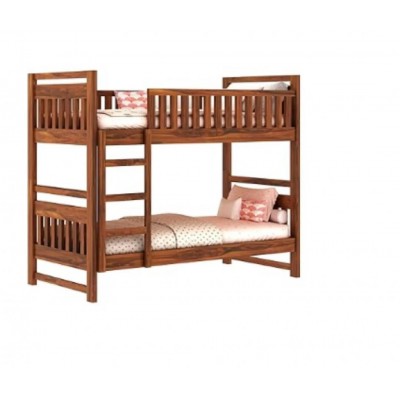 Double Bunk Bed Masonia Wood 76" (l) X 42.5" (w) With Side Guards And A Strong Ladder